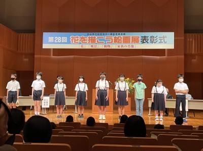 第28回花を描こう絵画展表彰式にて、本校の児童2人が表彰されています。