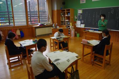 英語 「国際交流イベントで何がしたい」という課題で、白山市の国際交流イベント情報を見て、相手が何をしたいのか、聞いたり答えたり熱心に取り組んでいます。金沢教育事務所から指導主事を招聘し、小中の教員が授業を参観し学びました。