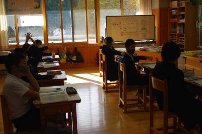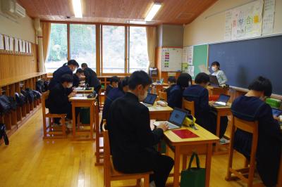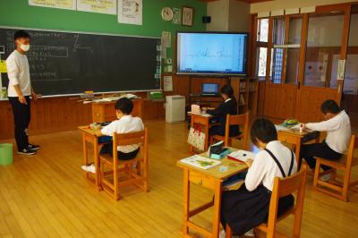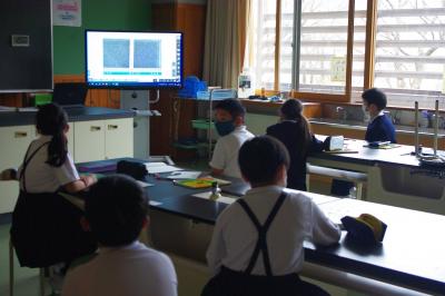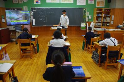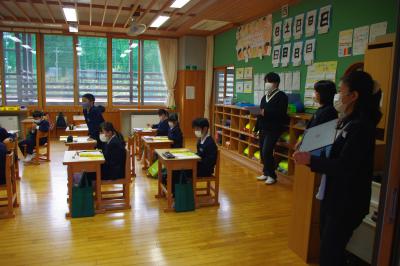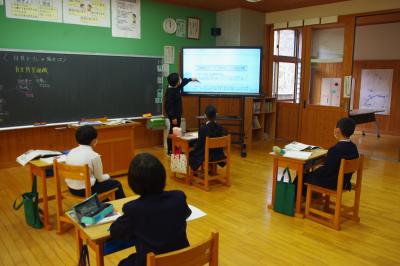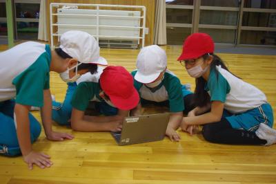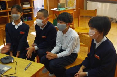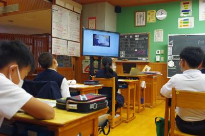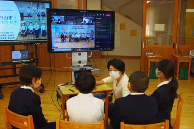 総合的な学習の時間 白峰小、鳥越小とオンライン交流会を行っています。各校が調べてきたことを発表しています。本校4年生も元気に堂々と発表しています。