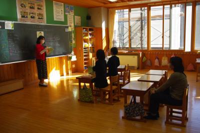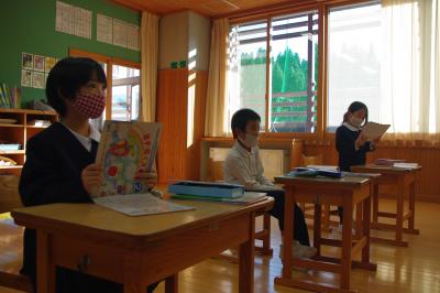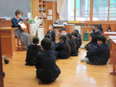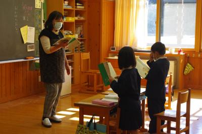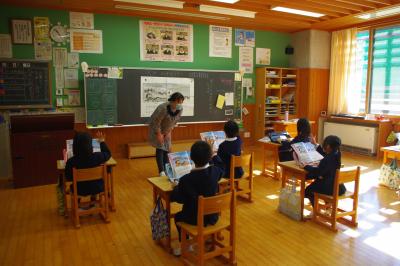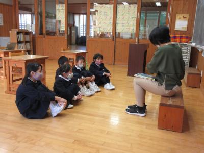 お話プレゼント 学期に1回、朝の時間に先生が児童に絵本を読みます。