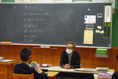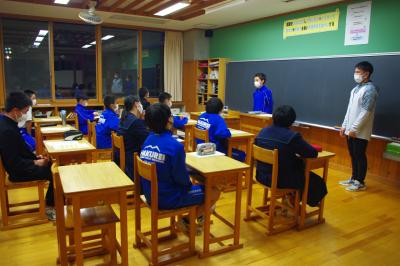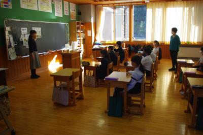 次に、小学生から、宿題の量はどれくらい?給食の量は増える?部活で一番楽しいことは?などの質問が出ています。その後、小学生同士でグループになり中学校の英語授業を体験しています。