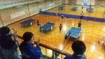卓球部が白山市卓球選手権大会に参加しています。チームメイトの試合では、拍手で応援をしています。