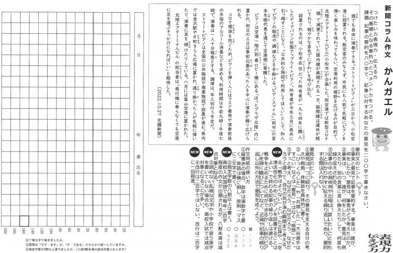 毎週水曜朝は新聞記事の要約と意見文を書いています。今日の課題はこれです。ひとりひとり添削して返却します。