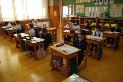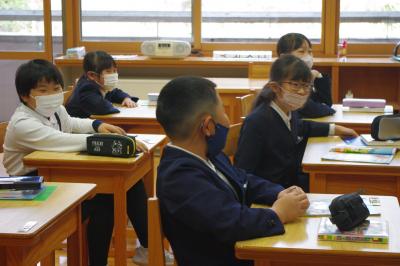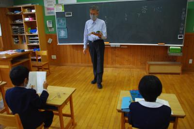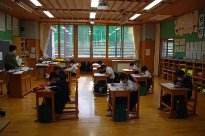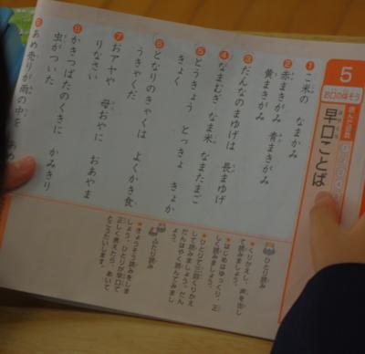 国語 早口言葉のタイムを競っています。すらすらと上手に読めています。