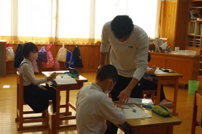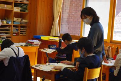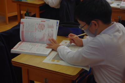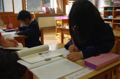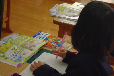 国語 漢字練習や読書課題など、それぞれの進度に合わせて学習しています。