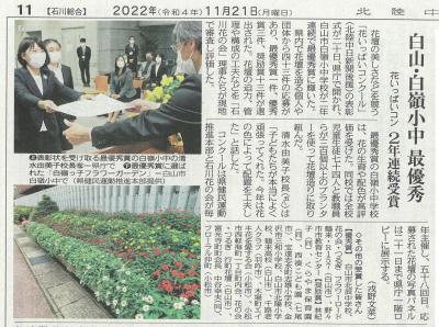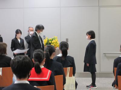 花いっぱいコンクールで白嶺小中学校が最優秀賞を受賞し、表彰されています。