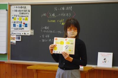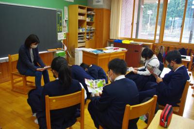 道徳 12月4日~10日は人権週間です。3冊の絵本を通して、LGBTQについて考えを交流させています。絵本の一冊は「タンタンタンゴはパパふたり」という作品です。お互いのことを気に入ってカップルになった2羽の雄ペンギンが石を温める様子を飼育員が見て、育てられなかったタマゴを置くと...。生徒からは性の多様性を認め合いたいという意見が述べられています。
