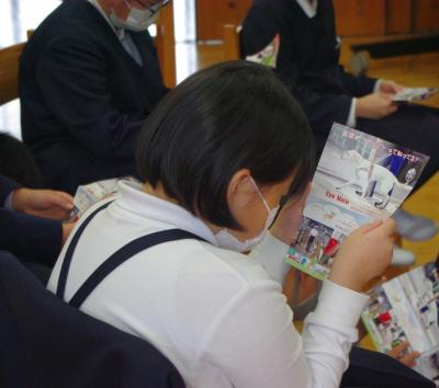 道徳 盲導犬のパンフレットを使って授業を行っています。