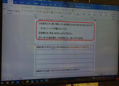 社会 鶴来のショッピングスクエア「レッツ」で取材をする準備をしています。販売や接客の工夫について質問します。