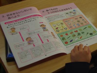 和食の良さについて栄養教諭と一緒に考え、学んでいます。