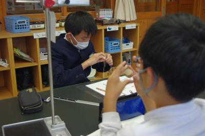 理科 振り子のひもの長さを長くすると一往復する時間はどうなるのか、実験を行います。