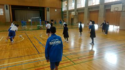 体育 バレーボール 12月9日の球技大会は鳥越中学校と合同で行います。両校全校生徒がそれぞれチームを作り、リーグ戦を行う予定です