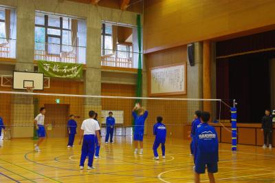 体育 バレーボール 白嶺中ではあたりまえのことなのですが、男女合同チームで試合をします。