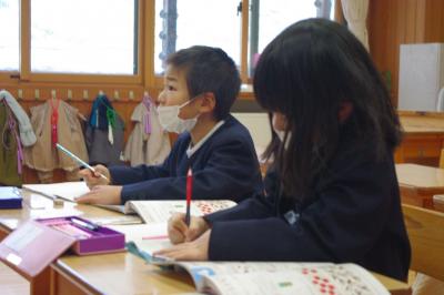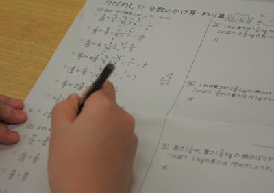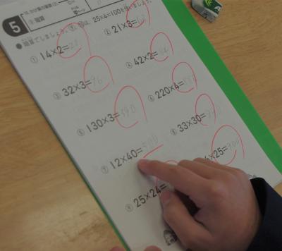 算数 筆算練習をしています。一つだけ間違え、悔しがっている人もいます。
