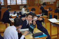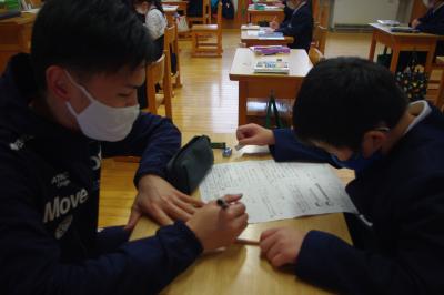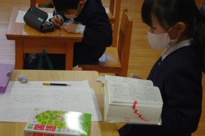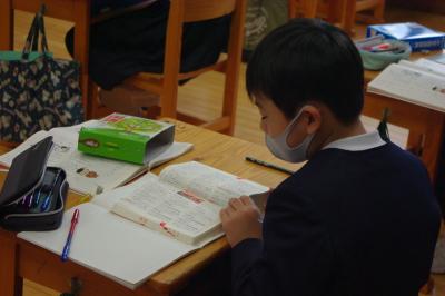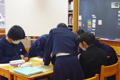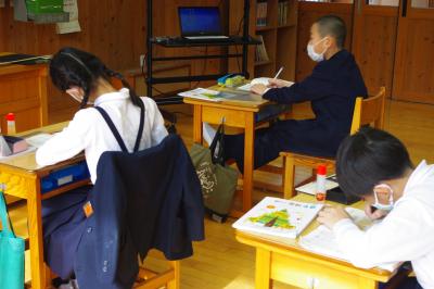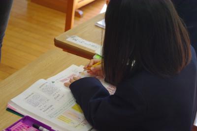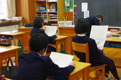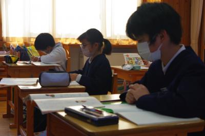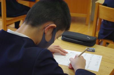 国語 テスト返しを行っています。どの教科も成績が伸びてきている人が増えているようです