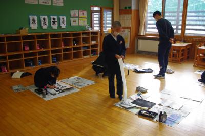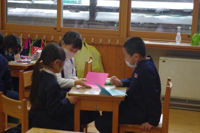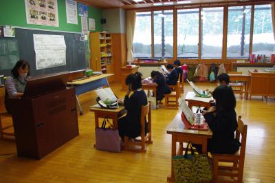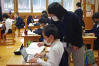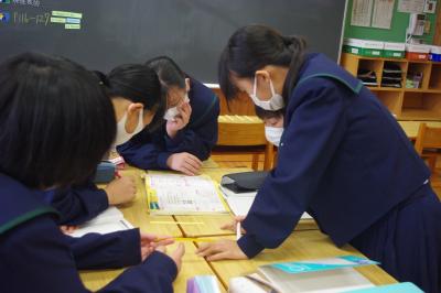 道徳 「かいらんばん」というお話を通して、地域の人々が交流を重ねたり生活を豊かにしたりしてきたことについて考えています。