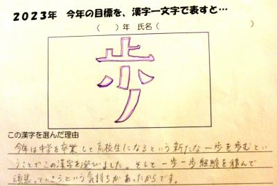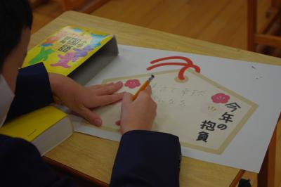 今年の目標 中学生になってがんばりたいことを絵馬に書いています。