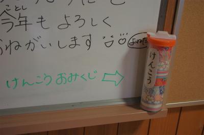 保健室前の掲示が新しくなっています。おみくじも引けます。
