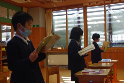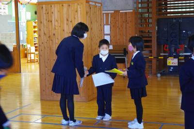 小学校の集会では先生から、3学期の学校生活を通して、たくましく、明るく、心の優し子を目指していきましょうというお話がありました。