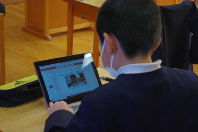 国語 説明文「不便の価値を見つめ直す」で筆者がどのような考えを述べているかを読み取っています。映像資料も見て、筆者の言いたいことを考えています。