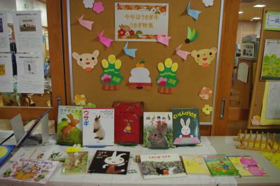 うさぎ年にちなんで、図書室前にはうさぎに関する本のコーナーを設けています。
