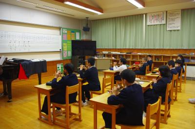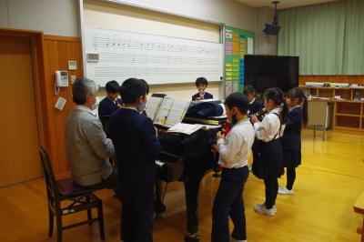 送る会に向けて合奏練習をしています。お互いに意見を出し合って創りあげています。