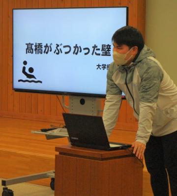 体育 今日はスキーの日です。アルペンスキーは白峰の競技場で活動しています。
