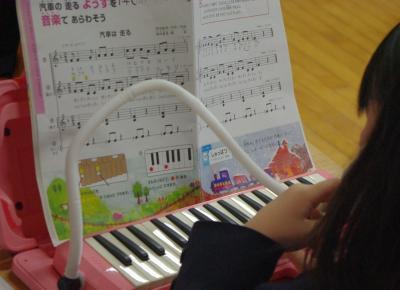 音楽 鍵盤ハーモニカで汽車が走る様子を表現しています。