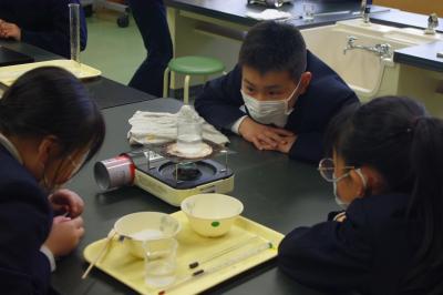理科 溶けきらない水溶液を溶かす方法について考えています。温めてみています。