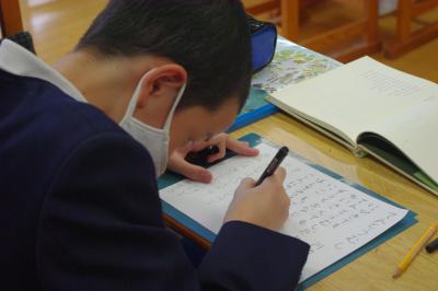 国語 家族について作文を書いています。お母さんのすごいところを書いている人もいます。