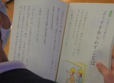 国語 「雨がざあざあ降っている」の「ざあざあ」のように、様子を表す言葉について学んでいます。