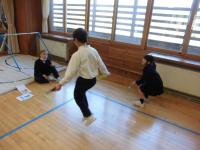 〈小学校〉なわとび週間の取組で、長休みは全校で練習をします。今日は縦割り班のペアで数を数え合ったり、跳び方のコツを教え合ったりしてもらっています。