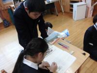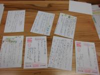 〈小学校〉1・2・6年生 年賀状を書きました。文字やイラストを丁寧に書いています。