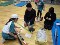 3・4・5・6年生は、3学期にクロスカントリースキーを行います。今日は5・6年生が3・4年生に準備の仕方を教えてくれました。板の手入れや靴のサイズ合わせをしました。