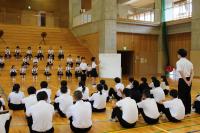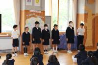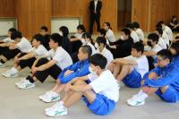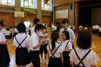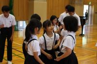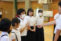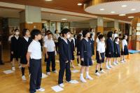 中学校生徒会から「運動会スローガン募集のお知らせ」、中学生からは各種大会の表彰報告などがありました。また、小中学生の交流レクリエーションもありました。声を出さずに互いの誕生日を伝え合い、全員で誕生日順に並ぶゲームです。