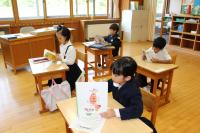 「お話ボランティア」の方々が、朝読書の時間に読み聞かせをしています。