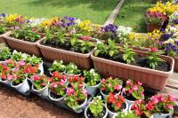 〈小中学校〉「白嶺っ子フラワーガーデン」 中学2年生が設置してくれたプランターに花苗を植えました。中学生はジニアを赤・黄・オレンジ・白の4色、小学生はマリーゴールド(黄)、ブルーサルビア、サルビア(赤)を植えました。