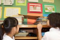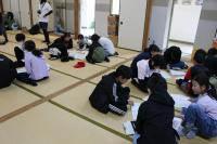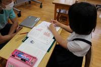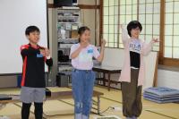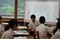 5年 外国語 合宿の様子を英語で伝え合っています。