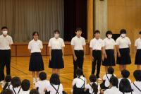 〈小中学校〉音楽集会 6月20日に行われる白山市小学校音楽会のリハーサルを兼ねて、中学生の前で小学生が合唱を披露しました。少し緊張していた小学生に、「きれいな歌声だった」「上手に歌っているので本番も自信をもって臨んでください」「笑顔で歌うといいと思います」など中学生からのアドバイスもありました。
