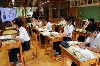 1年生は「ジオ」「エコ」についての個人の課題を探求します。2年生はふるさとの生業について調べています。3年生は白山手取川ジオパークとその他のジオパークを比較して調べています。