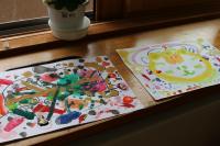 1年 図工 「1年生のお洗濯」絵の具を使って、しましまのシャツをつくりました。すてきな色に仕上がりました。