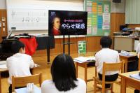 1年 音楽 モーツァルトの生い立ちやエピソードについて映像を見ながら学習しています。