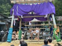 白峰で奉納相撲大会が行われ、本校生徒も出場しました。土俵上では非常に白熱した取組が見られました。多くの声援を受け、生徒達は奮闘していました。