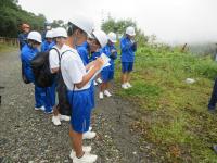 本日、ジオパーク学習の一環として白山火山学習教室現地研修が行われ、1年生が白山中飯場観測所付近に赴き、大学の専門家による解説や、金沢地方気象台、国土交通省の担当の方々の説明を聞きました。普段立ち入ることができない地域や施設まで見学することができ、生徒たちにとって非常に貴重な機会となりました。