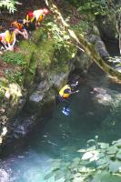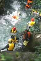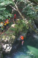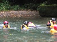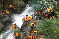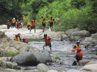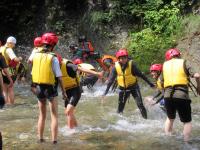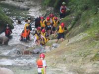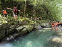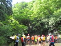 <中学校> 今日は夏のジオパーク研修があり、瀬波川で沢登り体験を行いました。講師の先生方に補助してもらったり見守っていただいたりしながら、ジオを体いっぱいに感じられる貴重な経験となりました。