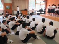 今日は先生による「朝講話」の日です。期末テストも終わり、いよいよ夏休みに向けて、各自が日々の過ごし方や習慣の大切さについて考える時間となりました。