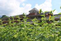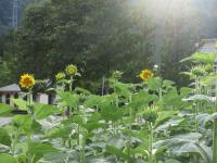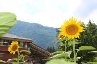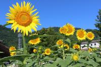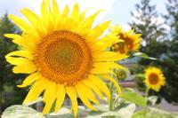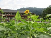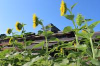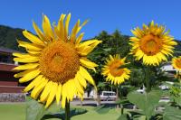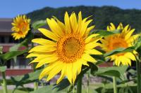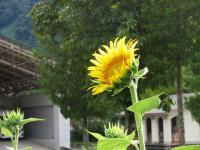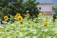 「福島ひまわり里親プロジェクト」 5月に種をまいたヒマワリの花がとうとう咲きました。夏休みに入ると同時に咲き出しました。まだつぼみがたくさんあるのでこれからが楽しみです。