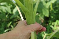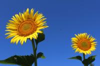 「福島ひまわり里親プロジェクト」 開花2日目 前日より多く開いています。草丈は大きいもので160㎝以上あり、茎もずいぶん太くなっています。