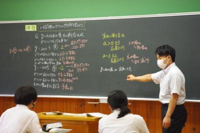 数学 数値を元に、一次関数のグラフを作り、説明しています。