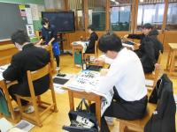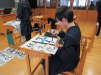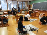 <中学校> 書き初め 新しい年を迎え、それぞれが強い決意を込めて書いています。